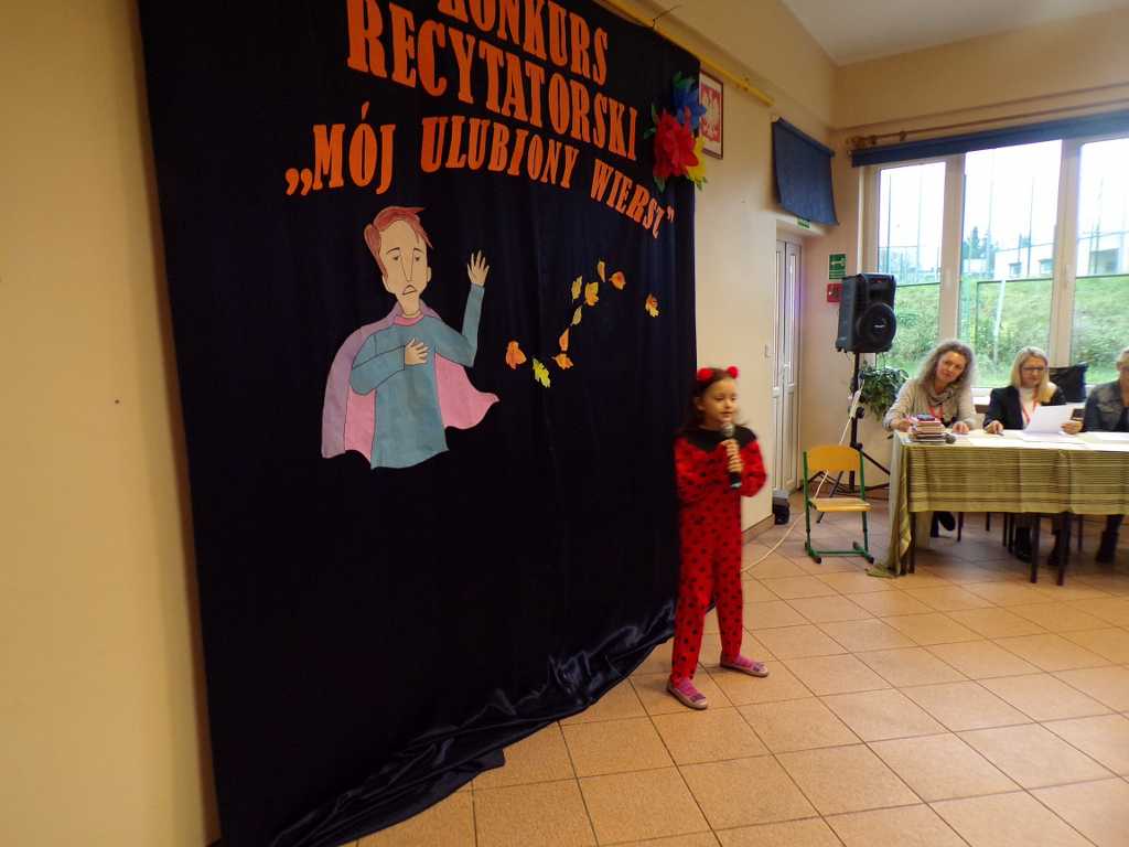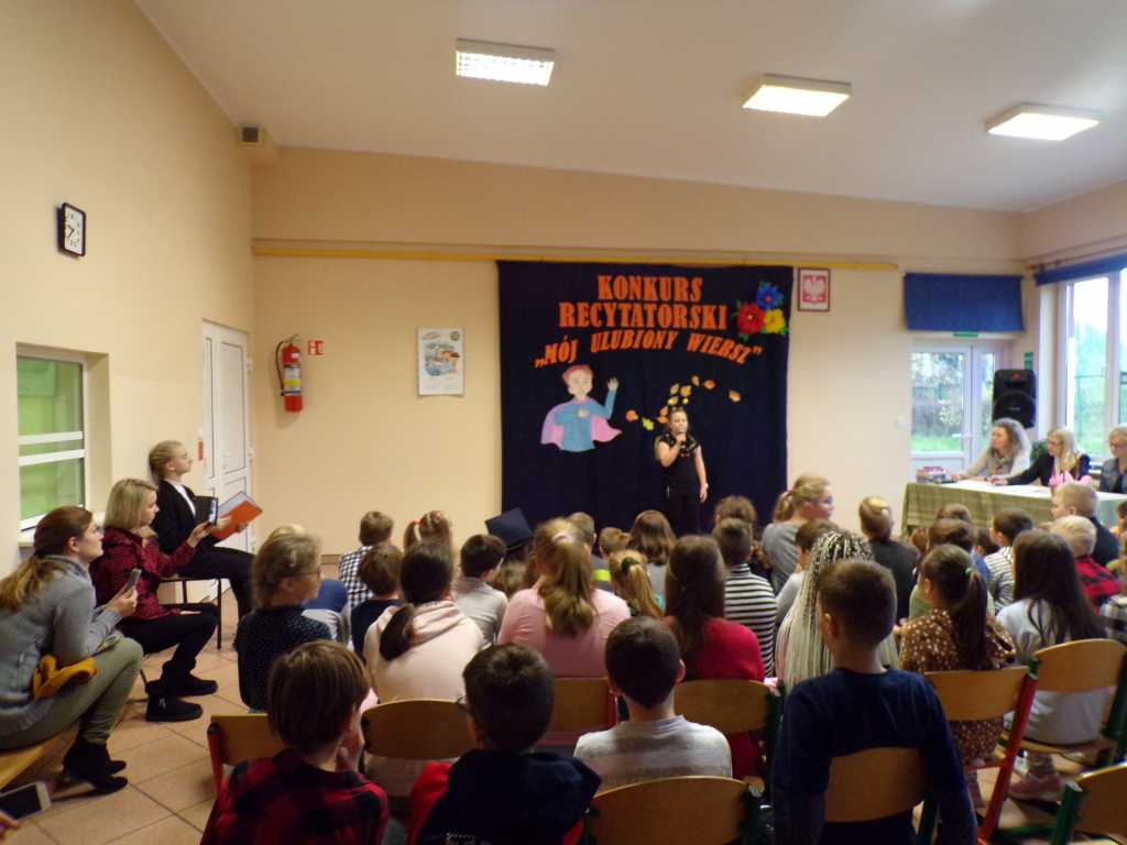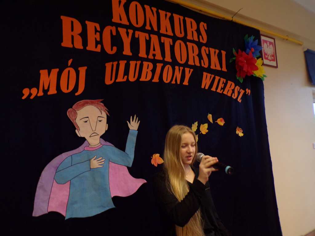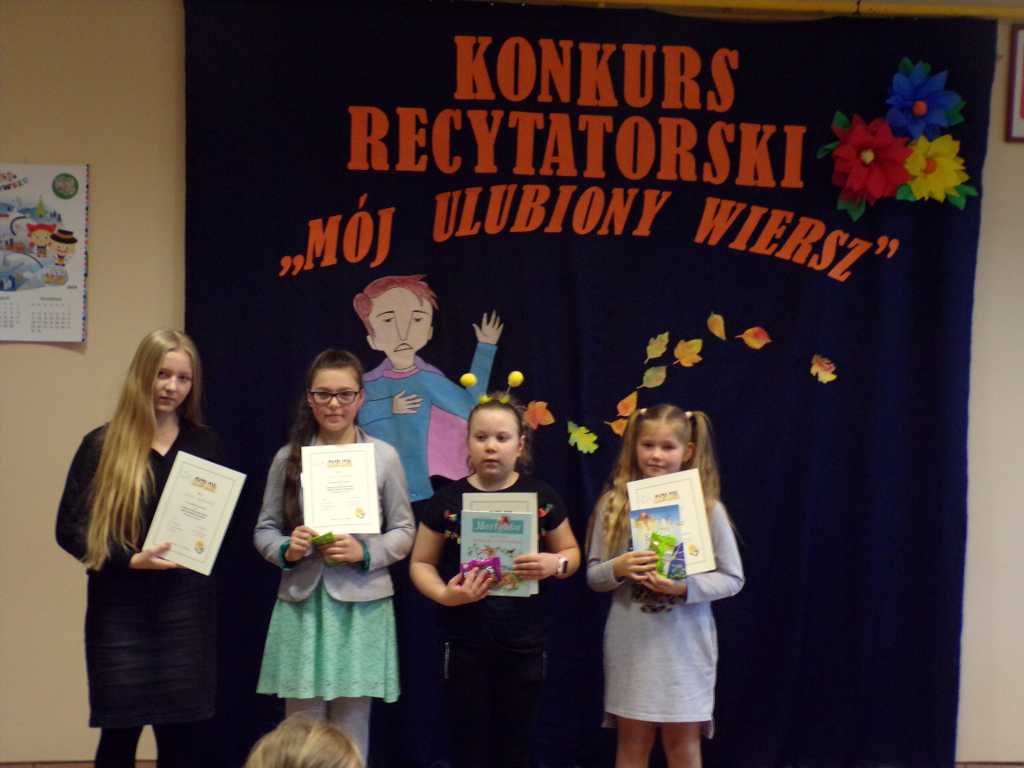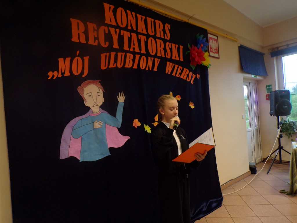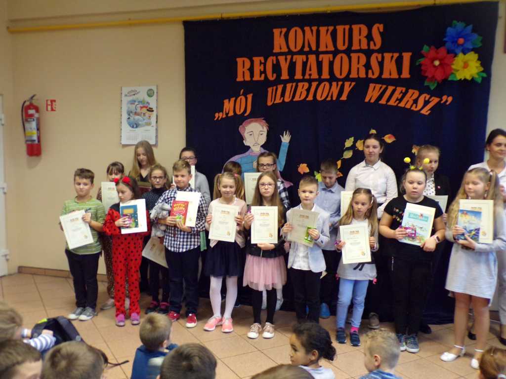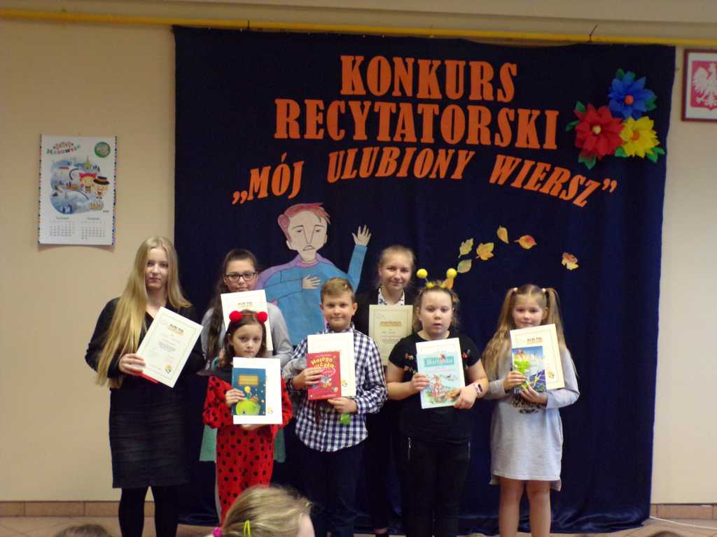 Dnia 21 listopada odbyły się w naszej szkole Eliminacje Szkolne Konkursu Recytatorskiego „Mój ulubiony Wiersz”. Zostały zorganizowane w celu wyłonienia czterech laureatów, którzy przystąpią do Tczewskiego Konkursu Recytatorskiego w Centrum Kultury i Sztuki w Tczewie dnia 3 grudnia bieżącego roku.